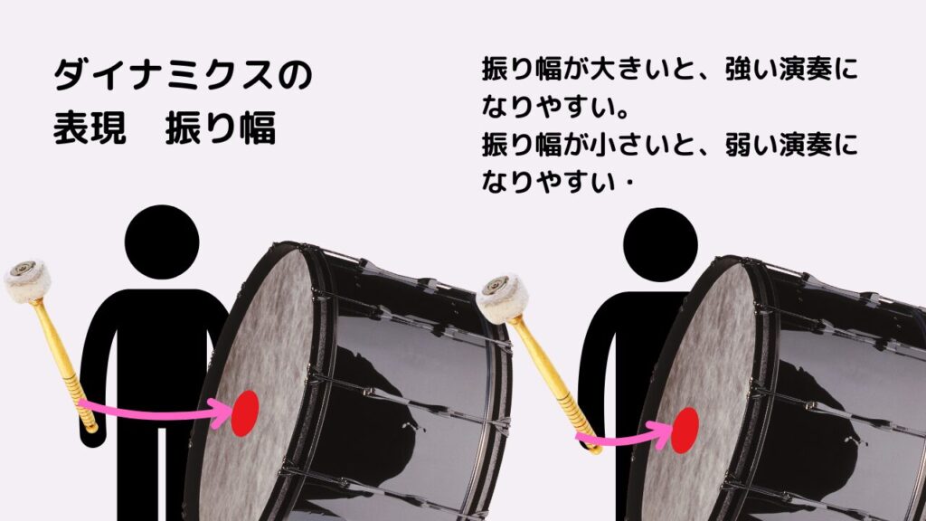 - 他の強弱記号の演奏と変化している点はどこか(ビーターの動かし方、身体の使い方など)
