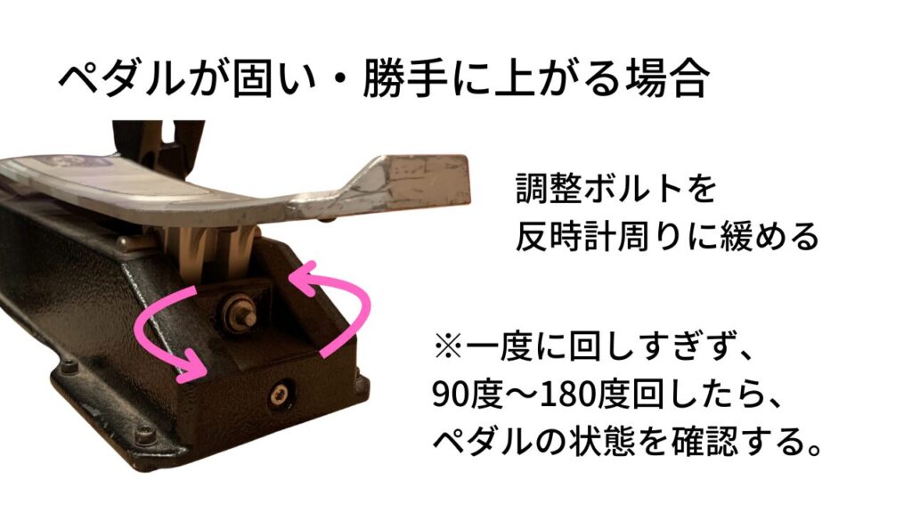 ケース①:「ペダルが固い」「ペダルが勝手に上がってしまう」場合の対処法